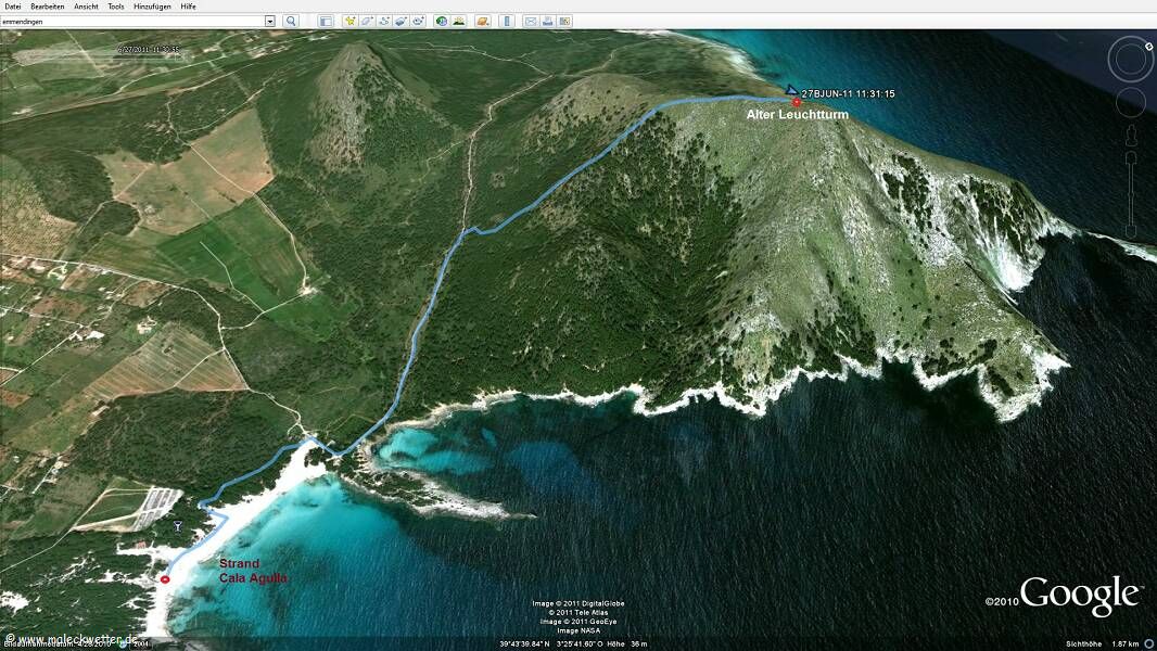 Tour vom Strand von Agulla zum alten Leuchtturm (GPS Aufzeichnung)